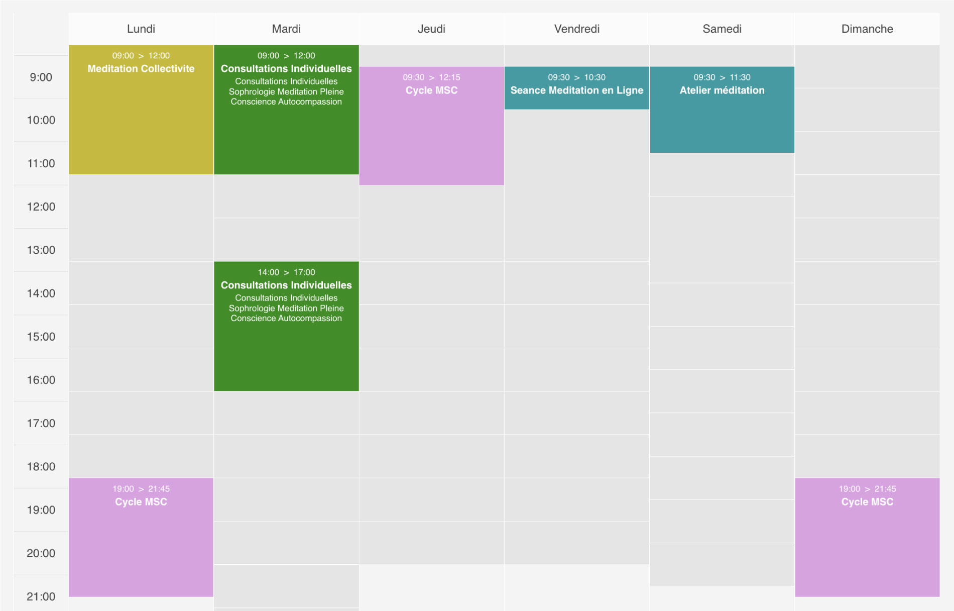 La pratique de la pleine conscience / sophrologie est un processus évolutif qui nécessite un cadre et un accompagnement adapté. Comme pour un cours de sport ou de musique, l’instructeur est là pour apprendre à cultiver cet entrainement de l’esprit à la pleine conscience, tout au long des séances. Ceci permet de pratiquer dans des conditions de sécurité et de confort pour vraiment profiter des bienfaits de la pleine conscience, et aller vers l’autonomie de la pratique.